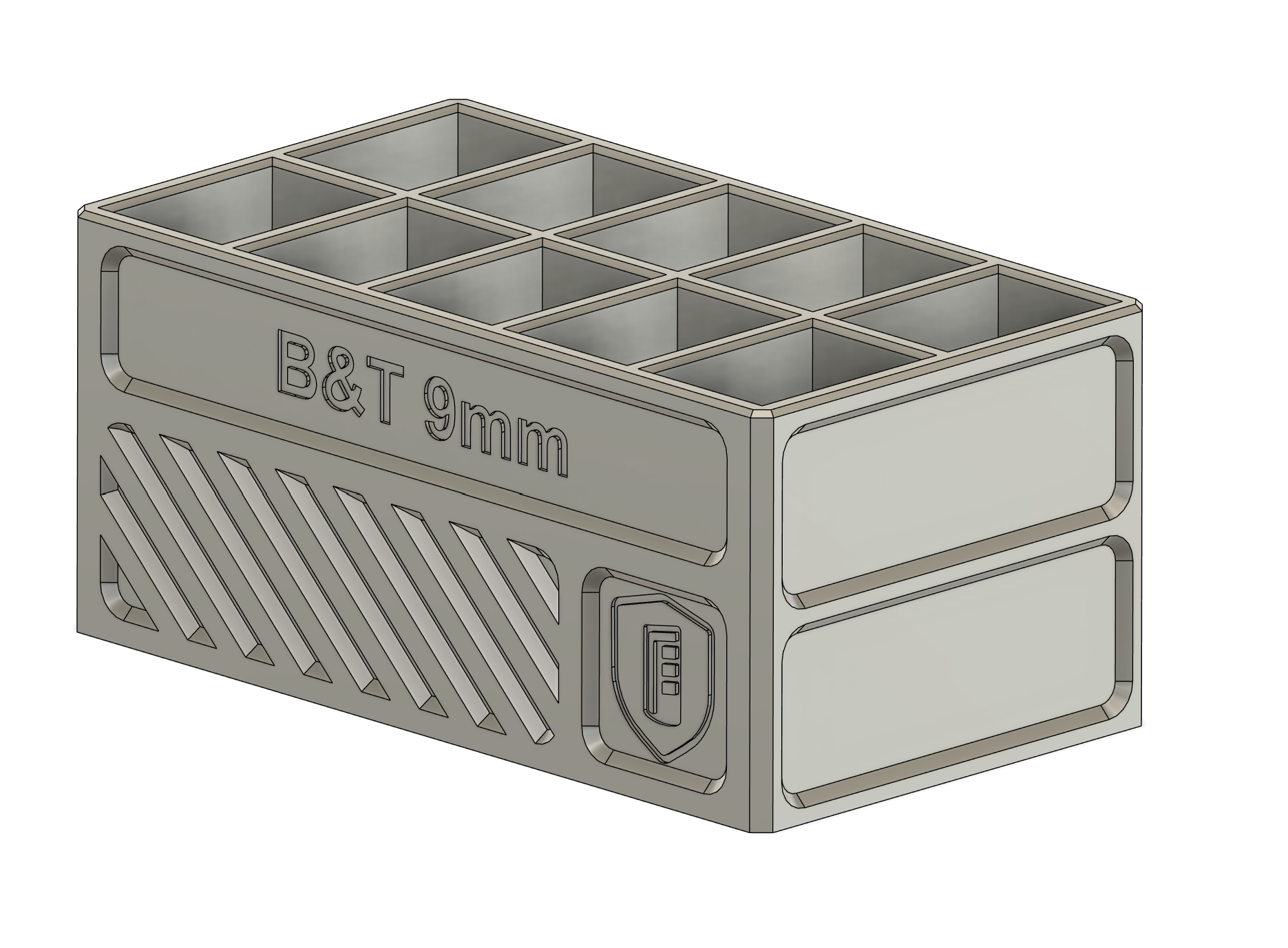 - 10-Slot Organizer – Ideal for storing a full set of 10 B&T Proprietary 9mm Magazines efficiently.